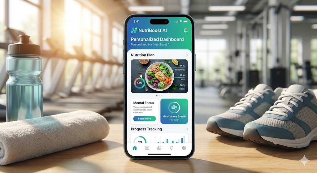 「スポーツパフォーマンスを支えるのは、“見えない栄養”です。NutriBoostは、あなたの食事をチームメイトのように支えます。」